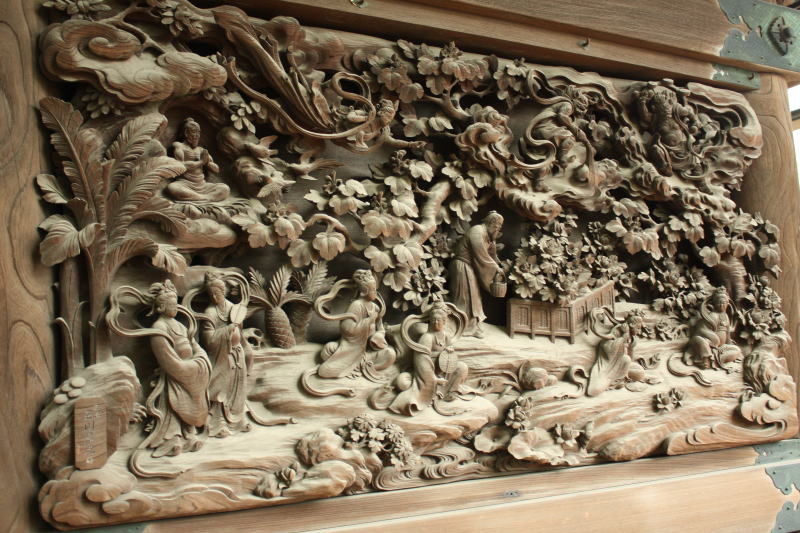 柴又帝釈天の帝釈堂・内陣の外側には十枚の胴羽目彫刻があり