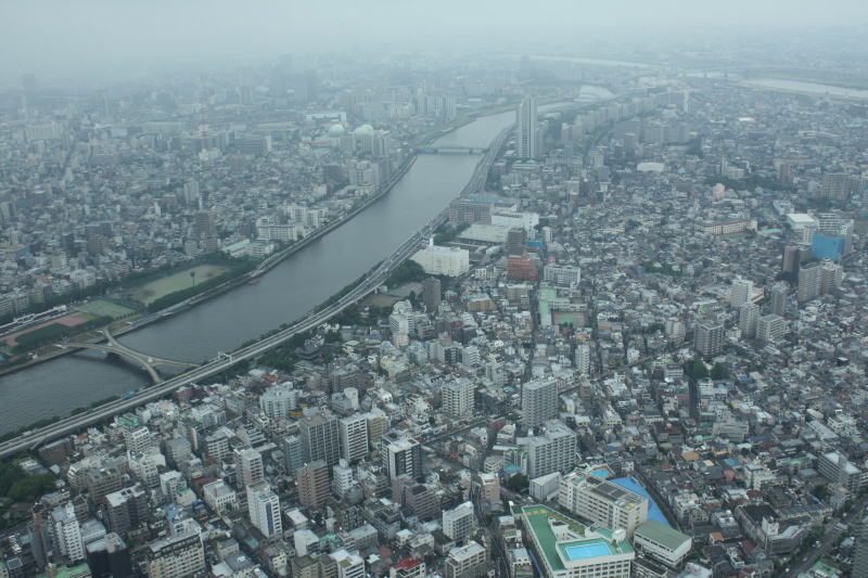 あいにくの雨模様で隅田川上流付近は霞んでいる