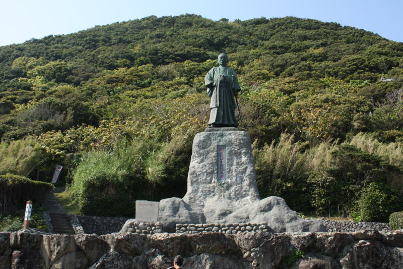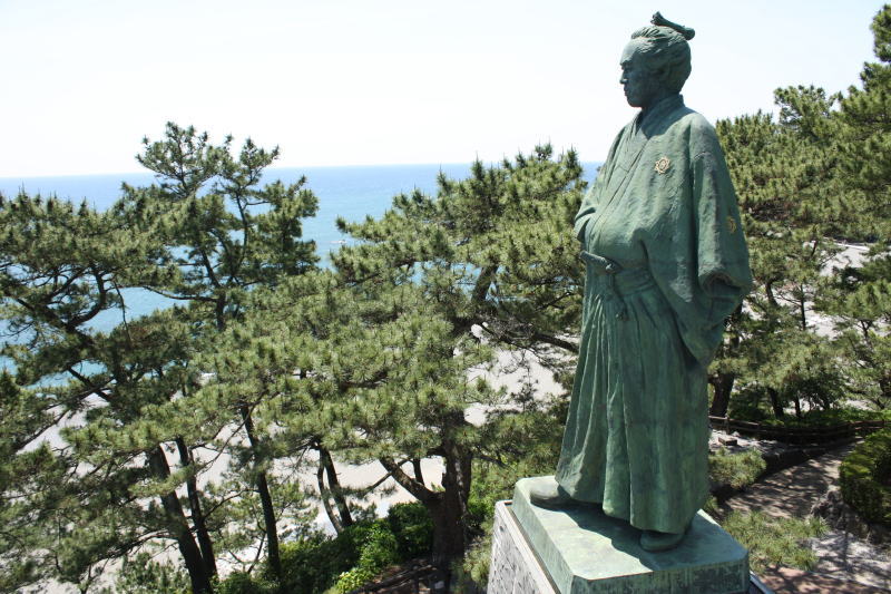 龍頭岬の丘の上に建つ坂本龍馬銅像