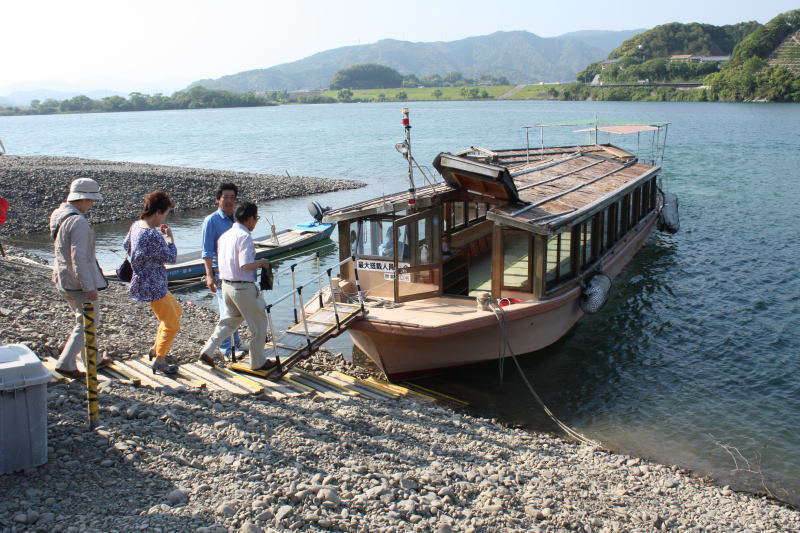 四万十川の屋形船に乗り込む