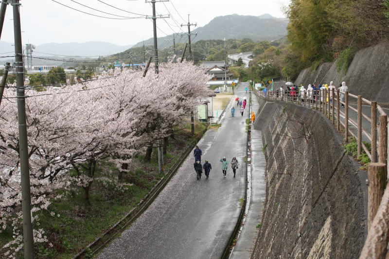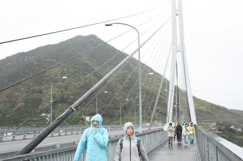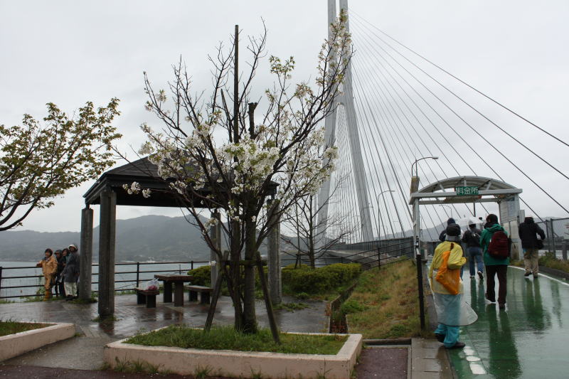 多々羅大橋は橋長さ1480mで白鳥が羽を広げたような形の美しい橋で、歩いて渡れる橋としても人気を博しているそうです。スタート地点の瀬戸田PAからゴール地点の大三島まで約5km弱の行程を名残の桜を見ながら楽しんできました。