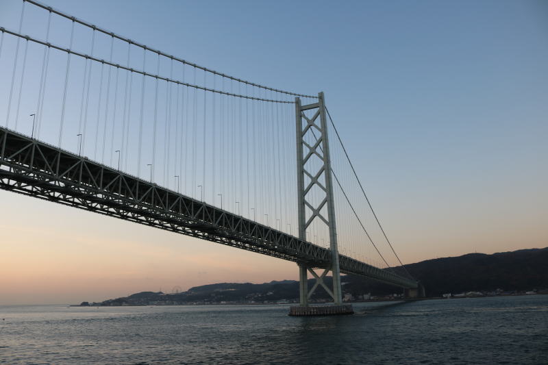 明石海峡大橋付近で日の出を迎え、船上から眺めること