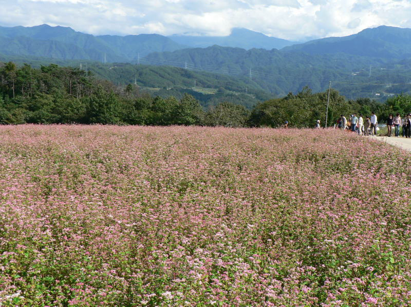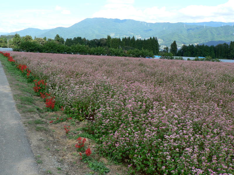 西原ぶどう園の近くでは赤そば花祭りが行われていた |