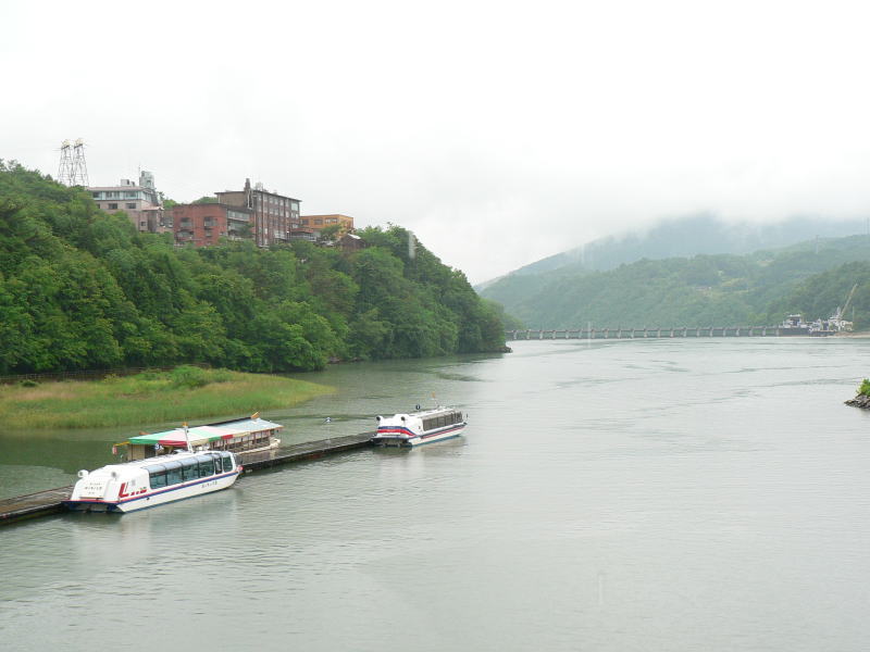 恵那峡めぐりは高速ジェット船で約30分かけて周遊する