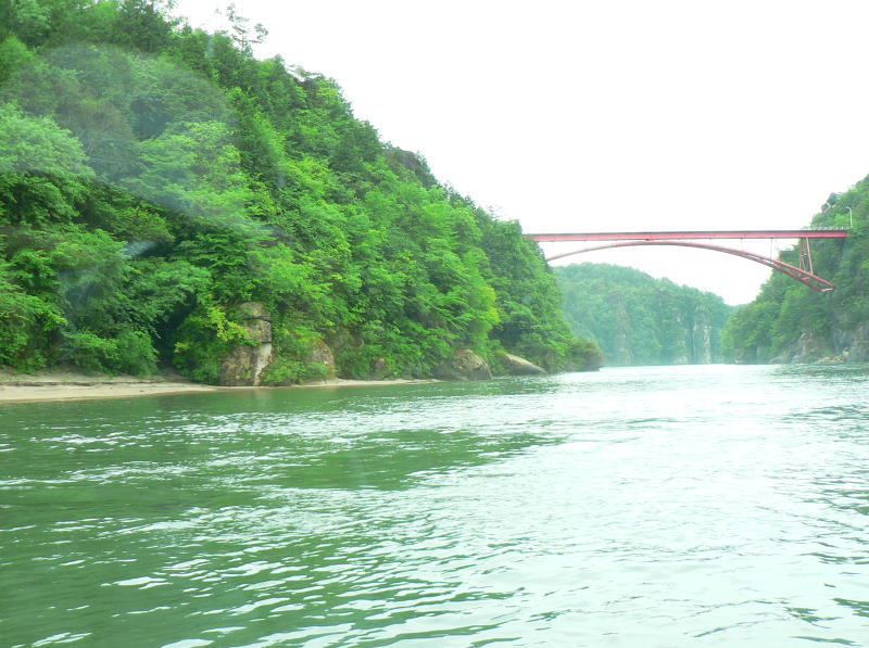 新緑をバックに周遊する高速ジェット船