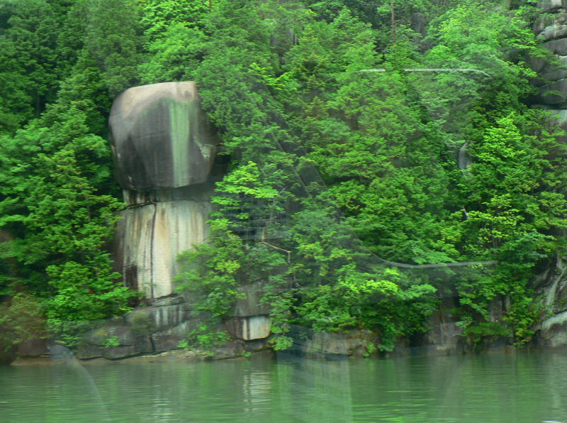 恵那峡の両岸には奇岩や怪石が奇妙な景観を形成している