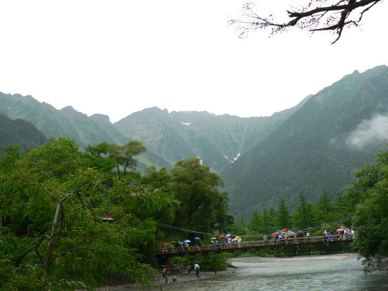 河童橋のバックに穂高連峰