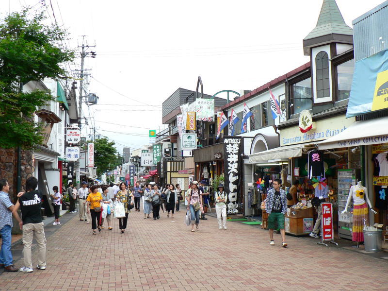 沢山のアンティークショップが並ぶ軽井沢銀座は若者たちで賑わう