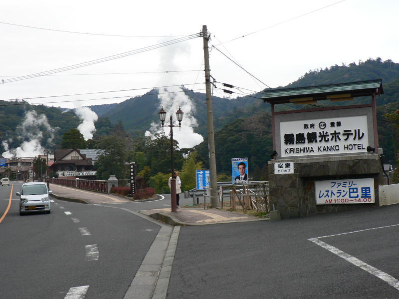 あちこちから温泉の湯気が立ち昇る霧島温泉郷 |