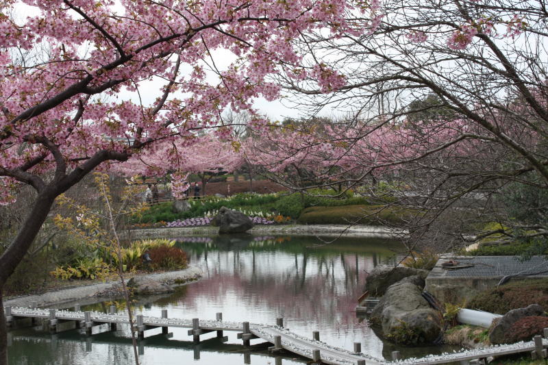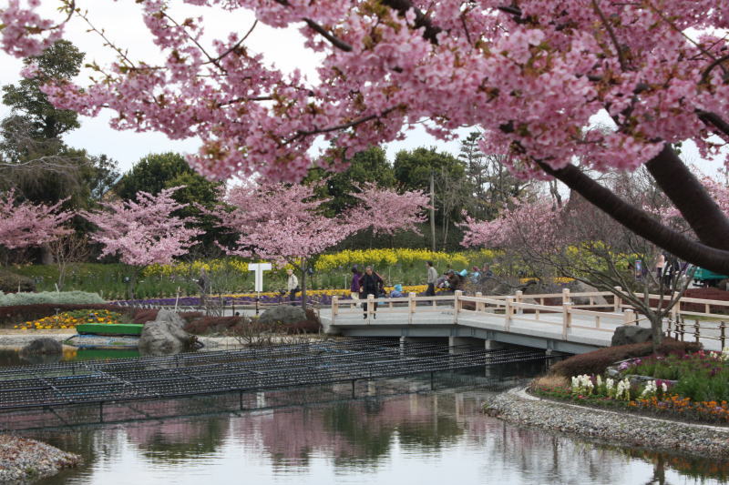 石廊崎周辺が有名ですが、園内の河津桜も丁度満開を