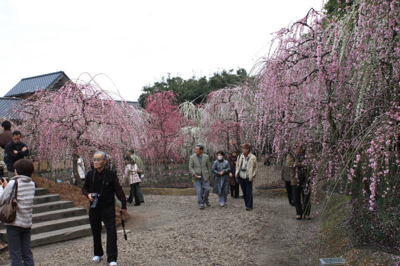 梅苑のしだれ梅は満開の峠を過ぎていましたが