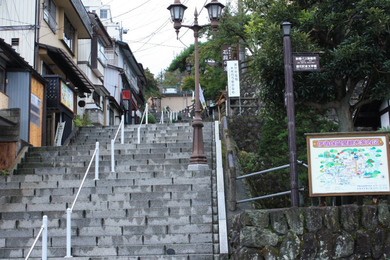 365段の石段の両脇に温泉旅館や土産物屋などが並ぶメインストリート