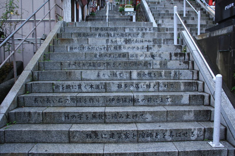 石段の途中には与謝野晶子の「伊香保の街」の詩が刻まれている