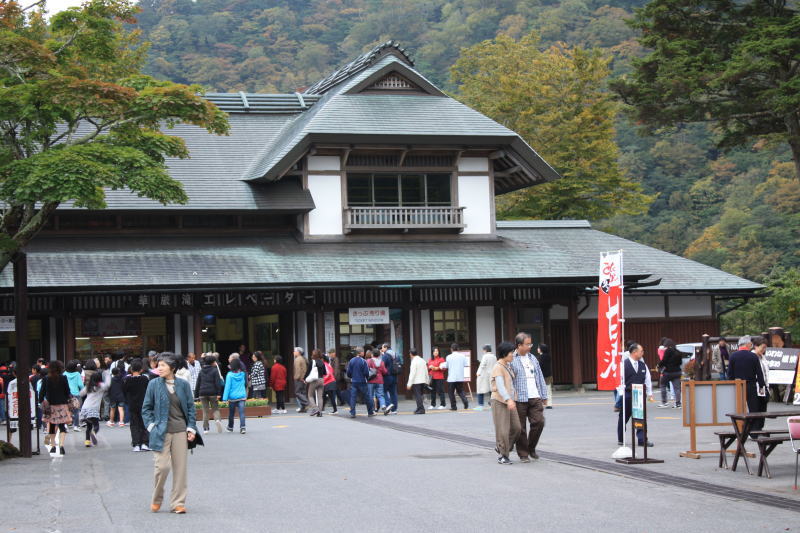 華厳の滝エレベーターで約100メートル下の観瀑台に降りる