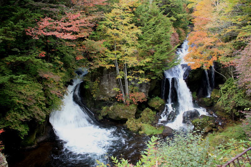 中禅寺湖の流出口にあり高さ97mの落差で流れ落ちる