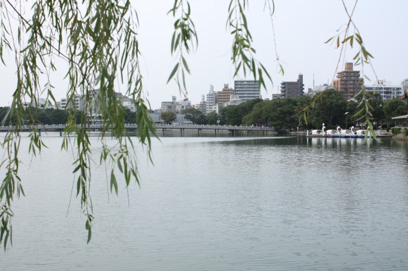 外周約2kmの池の中心には細長い島があり橋で繋がっている