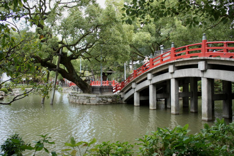 心字池に架かる過去・現在・未来を渡る太鼓橋