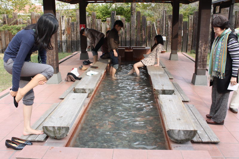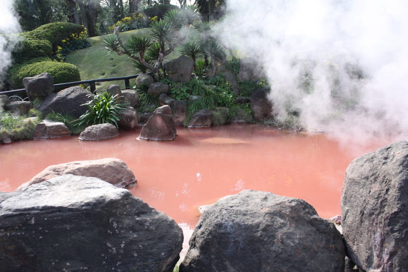 血の池地獄の足湯は肌がすべすべになるほど泉質がいい