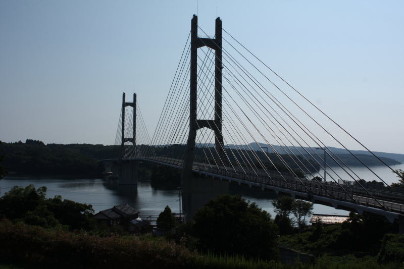 開湯1200年とされる歴史の古い温泉街、前方に架かるのは能登島大橋