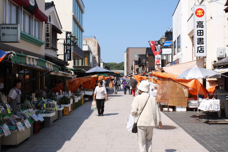 輪島市河井町本通に毎朝100軒〜250軒の露天が並ぶ