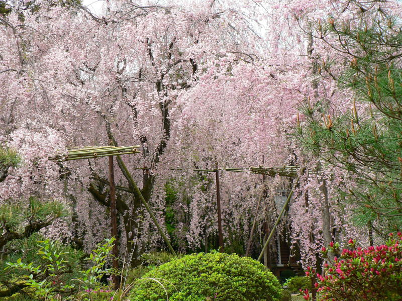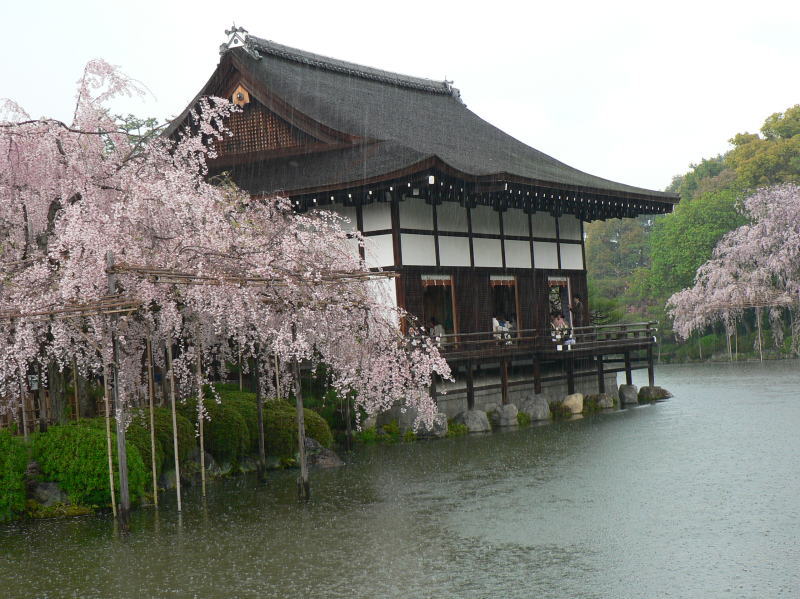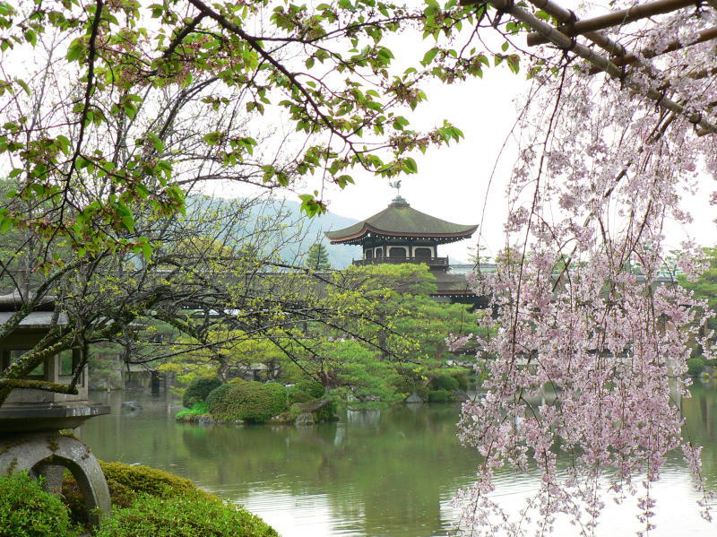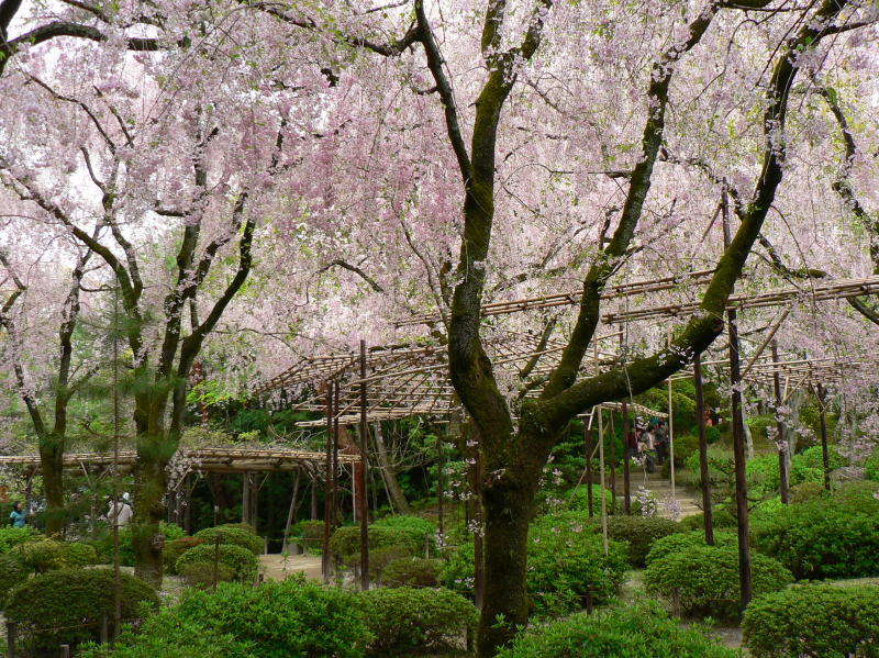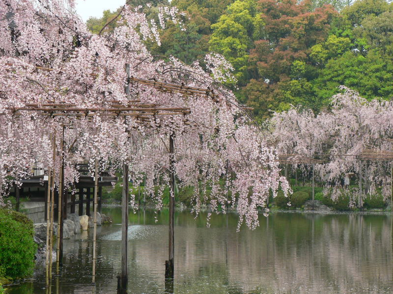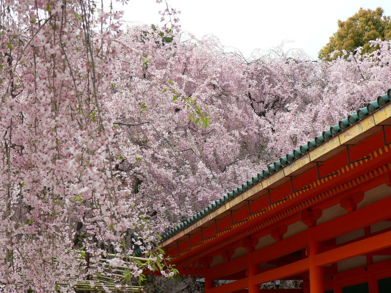 平安神宮の神苑を華麗に彩る有名な「紅しだれ桜」を