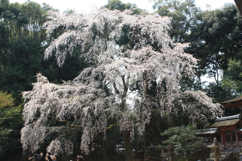 名所に比べて早く咲くのか名高いしだれ桜も花吹雪の
