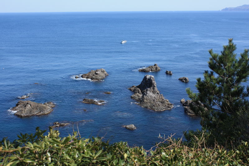日本海の荒波に侵食された海食洞窟や断崖・奇岩が多い