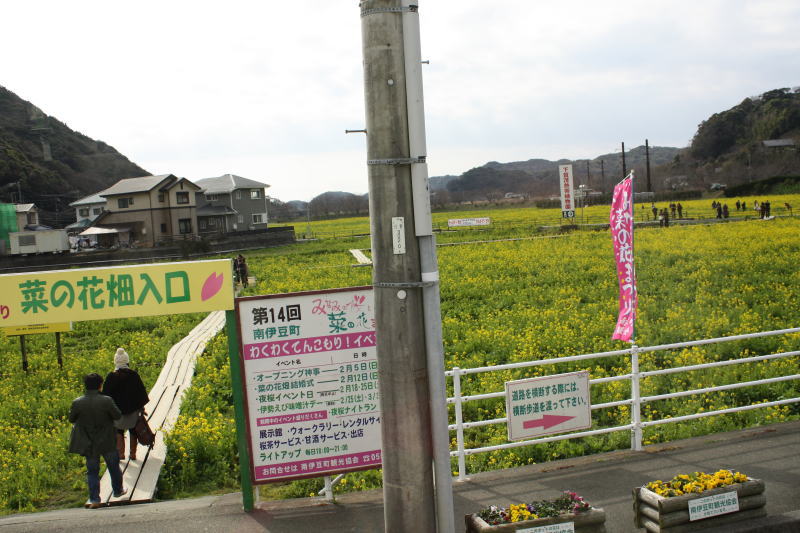 本場河津川沿いの「菜の花ロード」の河津桜はちらほら咲き