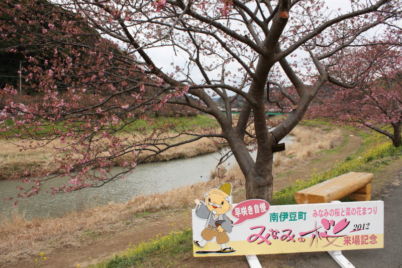 南伊豆の下賀茂温泉の青野川沿いに咲く河津桜は