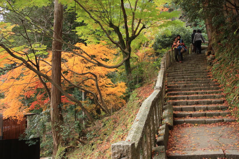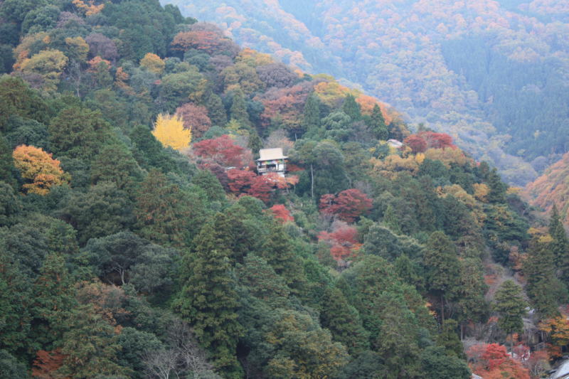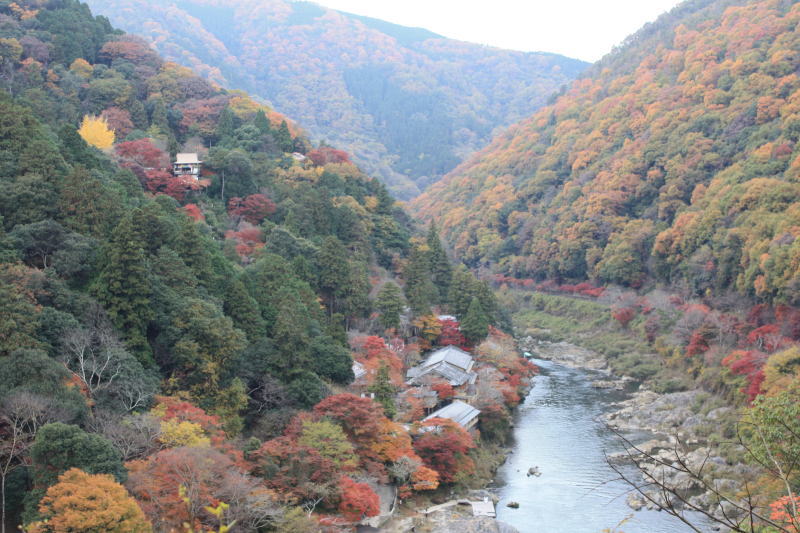 (保津川)の遊歩道から紅葉を眺めながら嵐山の中腹