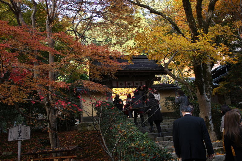 紅葉に囲まれた寂光寺の山門