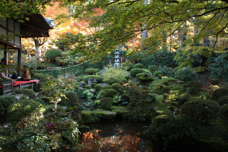 往生極楽院から眺めた池泉回遊式庭園「有清園」
