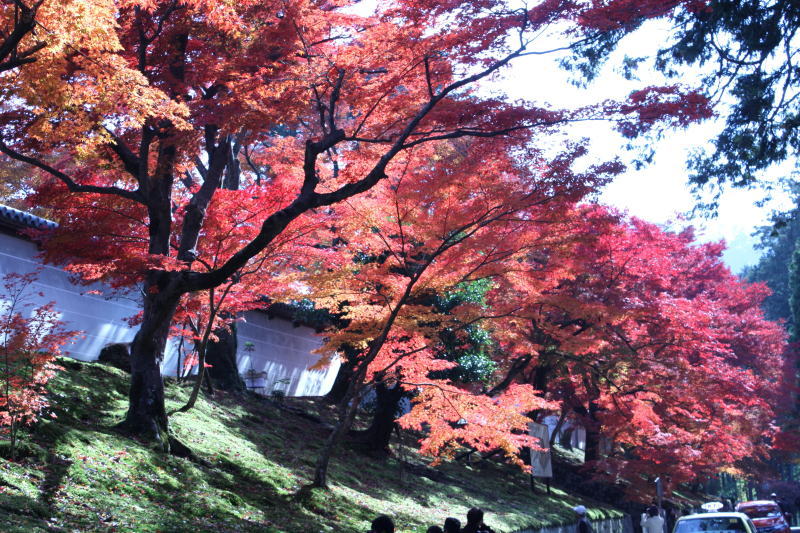 勅使門から大玄関に至る白壁に紅葉が映える