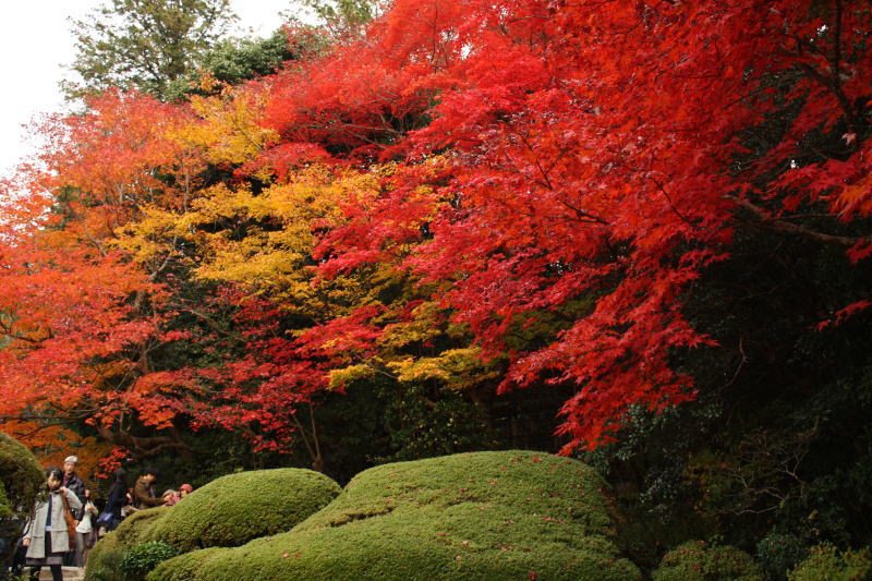 庭園では色とりどりの紅葉が見頃である