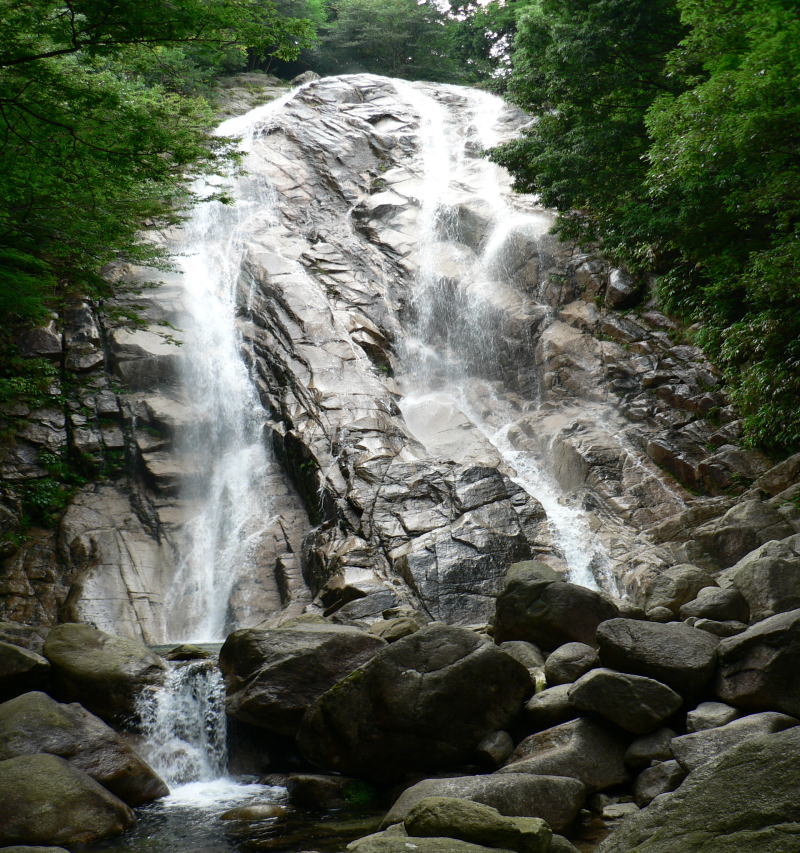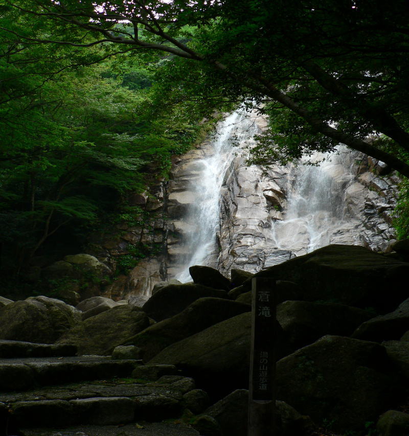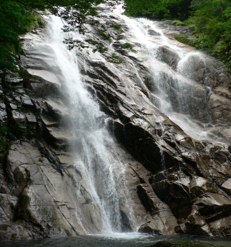 御在所岳北面と国見岳の清流を集めた落差50mの蒼滝