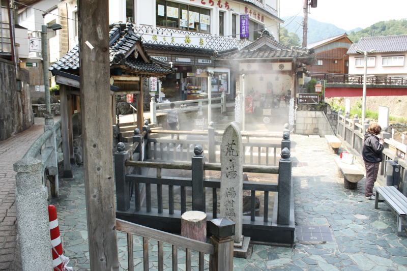 湯村温泉のシンボルにもなっている荒湯や手形散歩道、杜氏館