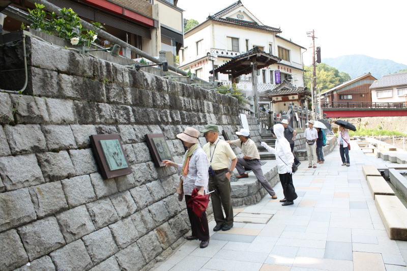 湯村を訪れた芸能人や文化人の手形プレート60基が設置されている