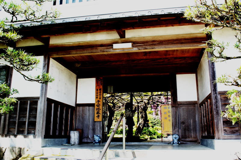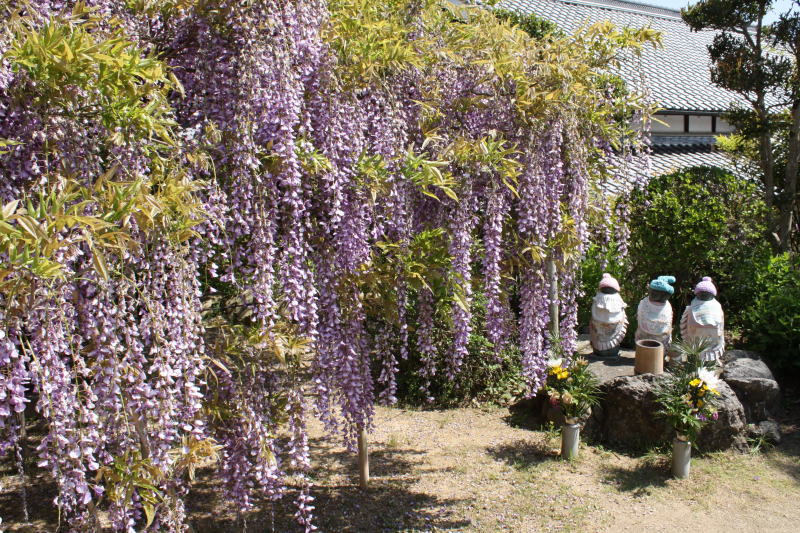 子安地蔵寺の参道では九尺藤が迎えてくれる