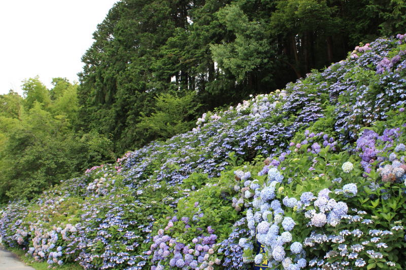 駐車場に着くと山の斜面一面のアジサイが迎えてくれる