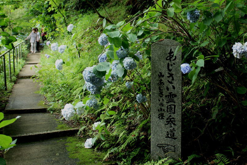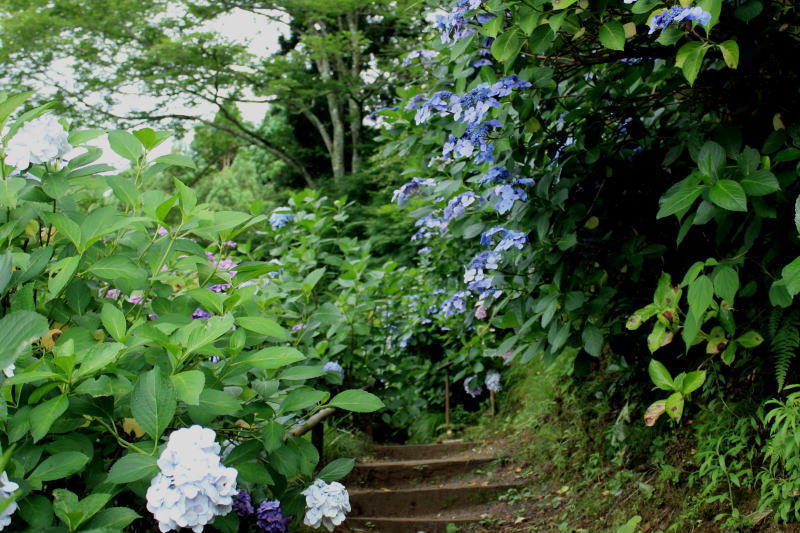 庫裡より山の斜面を通り本堂に出るアジサイの散策道