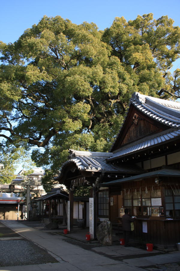 「上皇手植えの樟」と伝えられ樹齢900年と推定されるおおくすのき