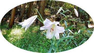 ササユリは、西日本に咲く野生のユリで、里地〜山地の森林に自生し、6月が開花時期です。笹に似た細い葉を有し、甘い香りの白〜ピンク色の花を咲かせます。