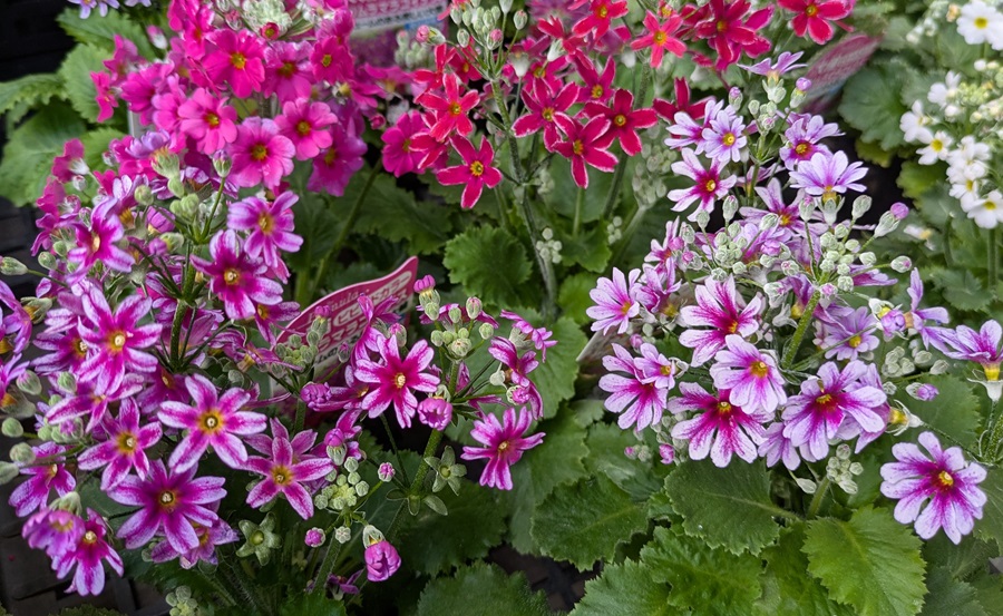店頭に並ぶ色々な桜草。春が待ち遠しい。