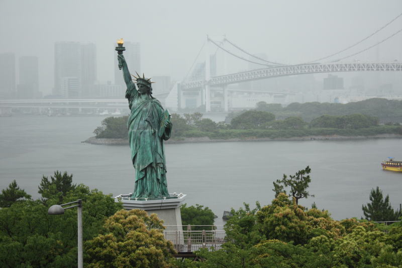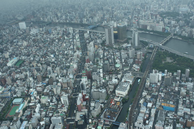 あいにくの雨模様で隅田川上流付近は霞んでいる