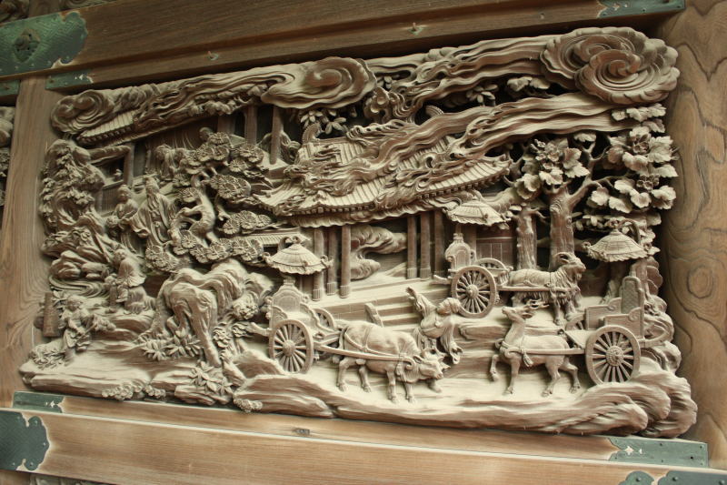 柴又帝釈天の帝釈堂・内陣の外側には十枚の胴羽目彫刻があり
