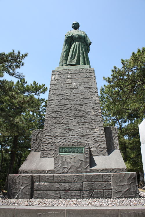 龍頭岬の丘の上に建つ坂本龍馬銅像