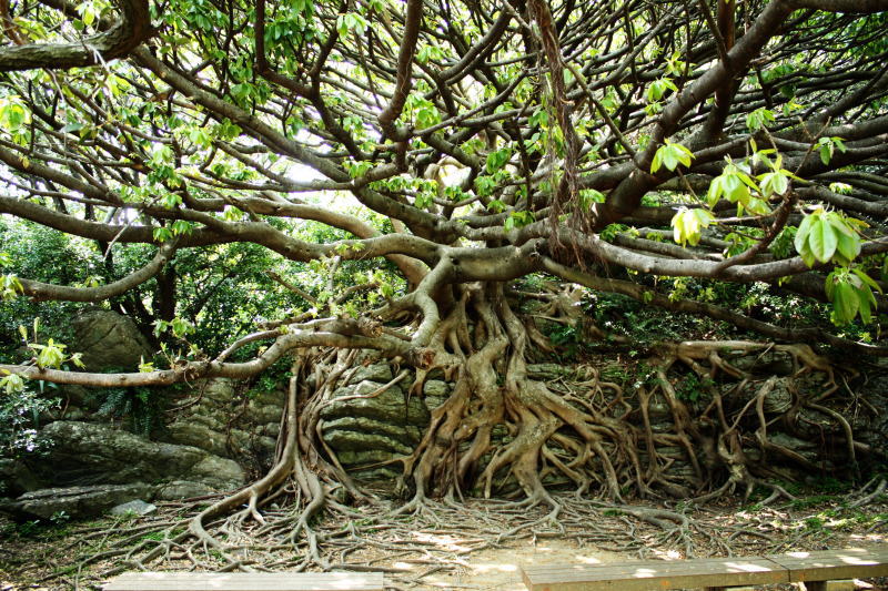 アコウ(根を岩に絡ませ生息する亜熱帯植物で天然記念物)