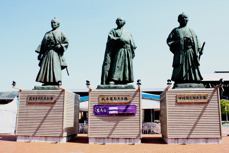 高知駅前に建てられた武市半平太・坂本龍馬・中岡慎太郎の三志士像