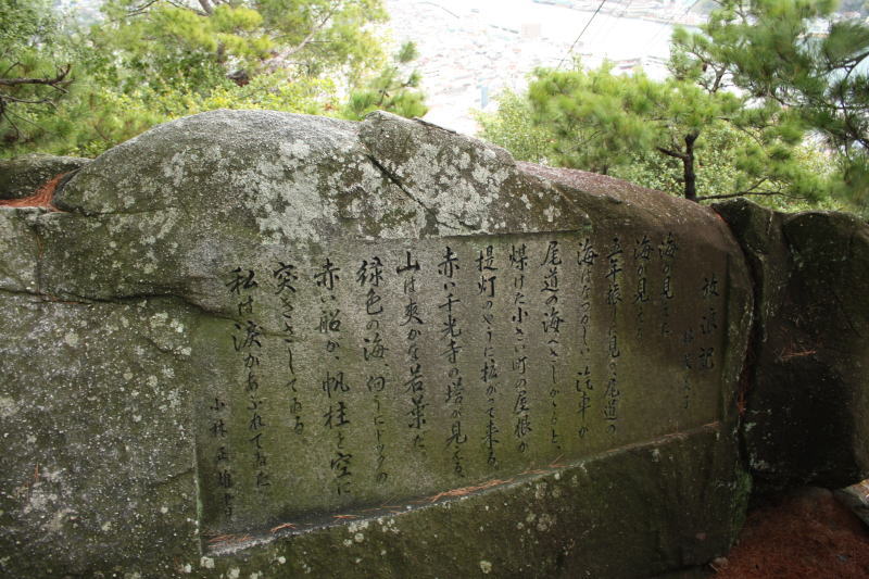 尾道にゆかりの人物の文章が自然石に刻まれている