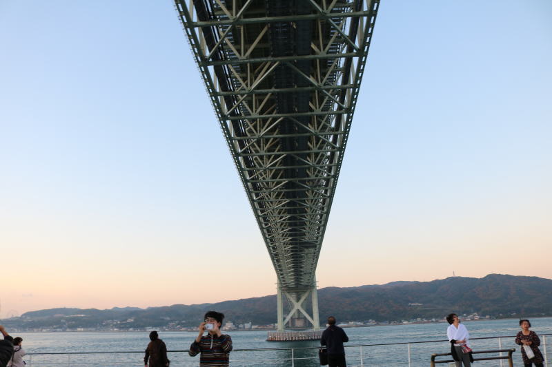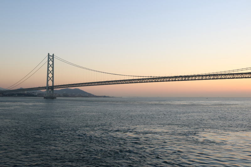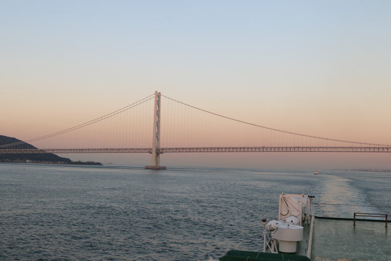 明石海峡大橋付近で日の出を迎え、船上から眺めること